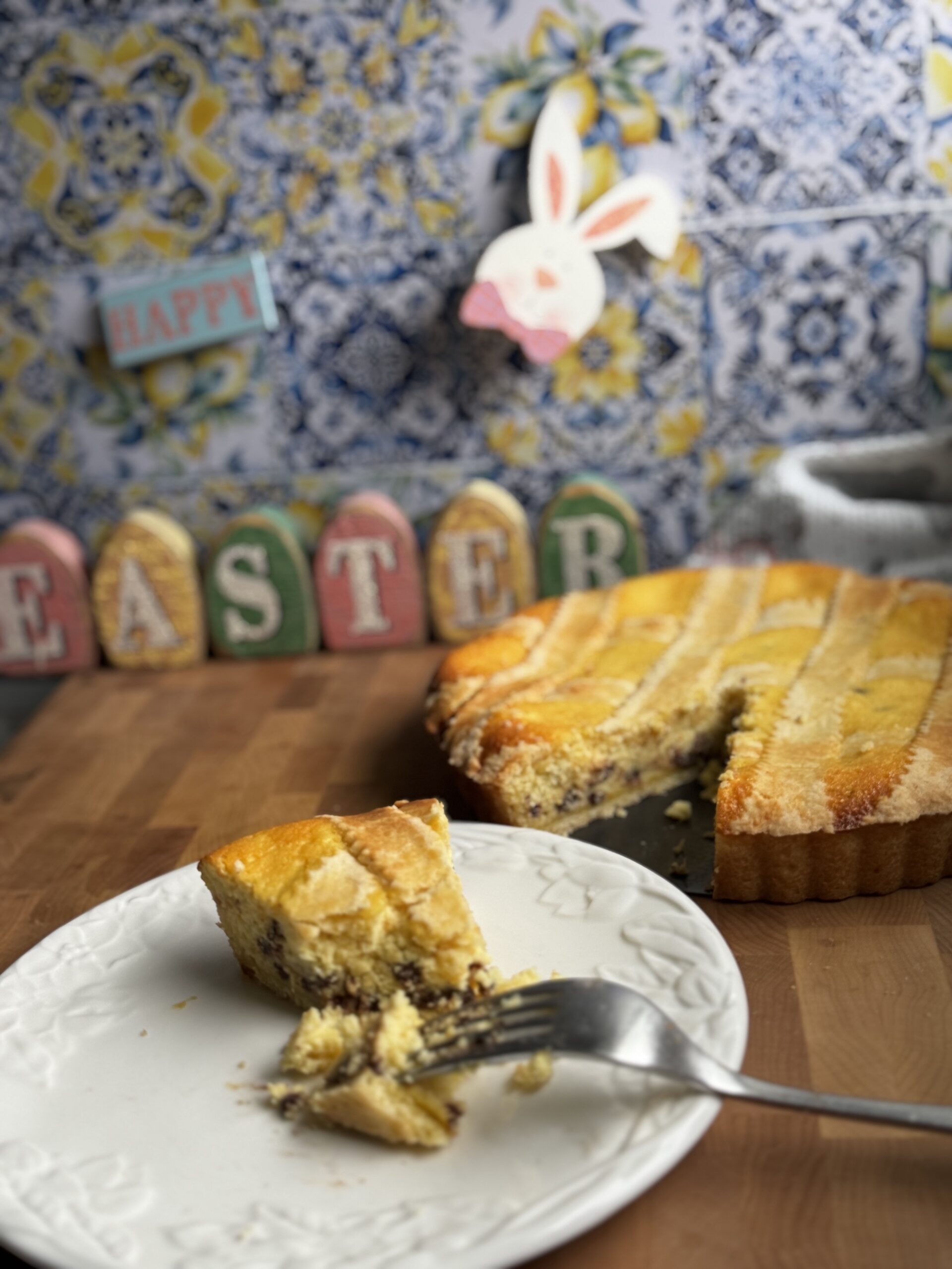 Roll of the other piece of dough and cut the strips for the top. Place the strips on top in a lattice formation.